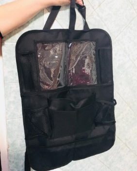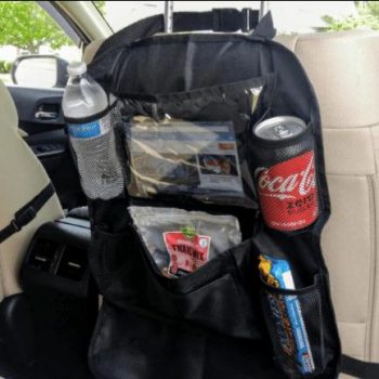 It is headache for me with the 2 kids always sitting at the back seats kicking the legs to spend the boring time, snacks and toys are everywhere. The car organizer is really helpful. It's made of water resistant machine washable material, multi pockets are easy to organize different things nicely. Now my car is clean and tidy, big relief. Thank you.