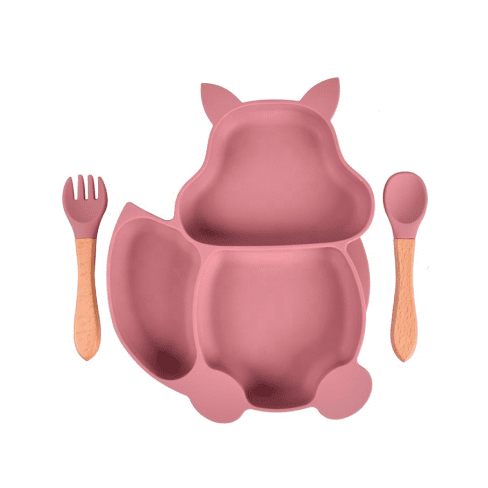 The plate comes with a bendable fork and spoon. It’s super cute, and has great suction. The size is a perfect little one - the other brand I bought is too big for my little solid food beginner.