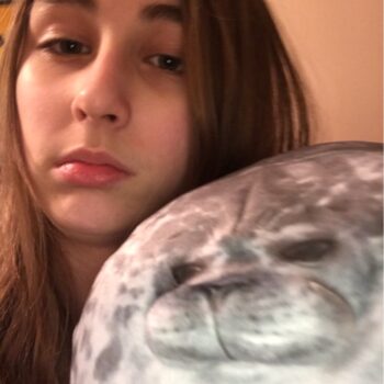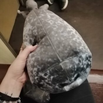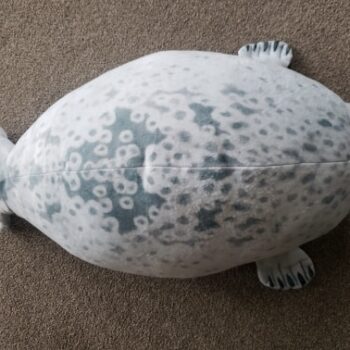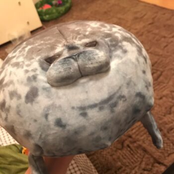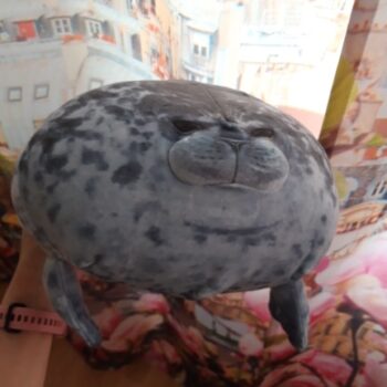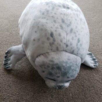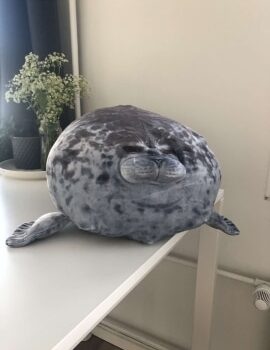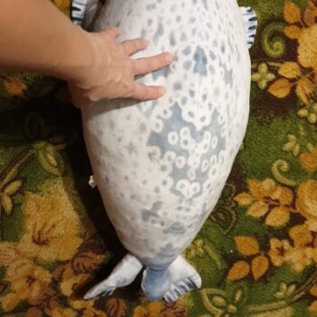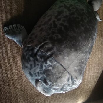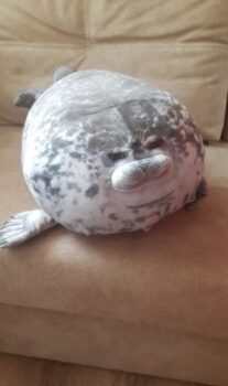 My boyfriend loves seals so when I saw this I just had to get it for him! It’s very soft, fluffy and squishable. However, based off the pictures I thought it was going to be a little bigger. Boyfriend still loves it though! He uses it as a travel pillow! Ha!